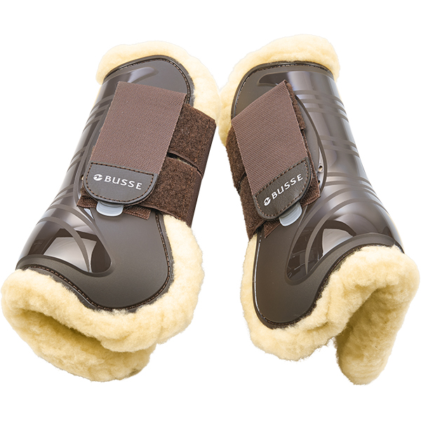 vorne offen mit zwei über die Vorderröhre zu ziehenden Elastikanzügen